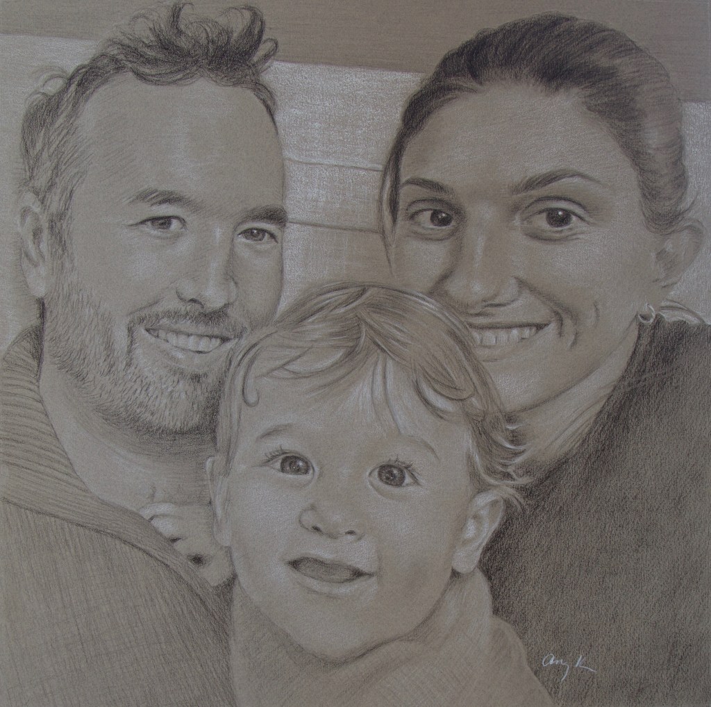 It had come to my attention that Happy’s family members were dealing with more than their fair share of challenges, and since Happy had always expressed interest and support for my work, I snooped around on Facebook and found an image of them that seemed purely happy and loving to create a surprise portrait for Christmas. My parents delivered it home to Vermont for Happy and her family:
