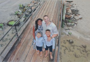 Paul with father and sons – losing a brother to suicide and teaching children compassion towards those with mental illness. Pastel on paper, 42×52″ framed