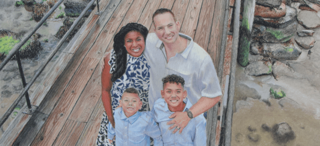 I Am More began in 2017 with a Jim, and now ends with a Jim, or “Jimmy,” as his family calls him. He comes from a large, loving Gloucester clan, and is known as one of the greatest football players in Gloucester High School history, a local legend. But the body that brought him so many accolades, has also presented him with some of the greatest challenges and lessons of his life. I would have never known how much he has endured from meeting him. He is sunny and warm and full of optimism and the desire to help, and he is full of gratitude for his extended family who have seen him through, and wanted to include ALL of them in his portrait, but I had to talk him down. His portrait shows his family on the journey over the hazards of life as a loving unit (with thanks to a certain whale drone pilot), in his beloved hometown: